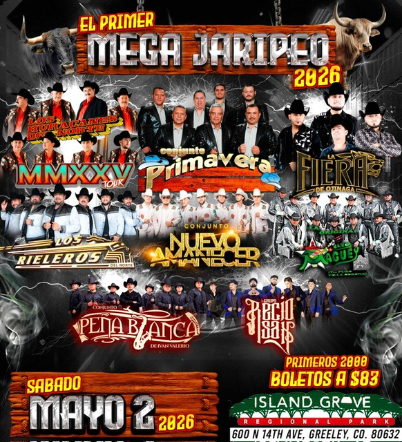 PRIMER MEGA JARIPEO-LOS HURACANES DEL NORTE-CONJUNTO PRIMAVERA-LA FIERA DE OJINAGA-LOS RIELEROS DEL NORTE-CONJUNTO NUEVO AMANECER-BANDA MAGUEY-CONJUNTO PENA BLANCA-GRUPO RECIO SAX-ISLAND GROVE